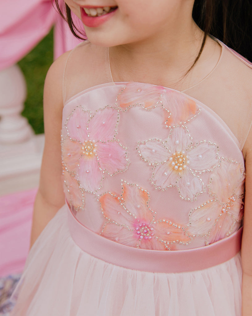 Blush Pink & Coral Floral Sparkling Tulle Embroidery Lace, Duchess, Shining Tulle (Gradient Colors), Cotton Lining.