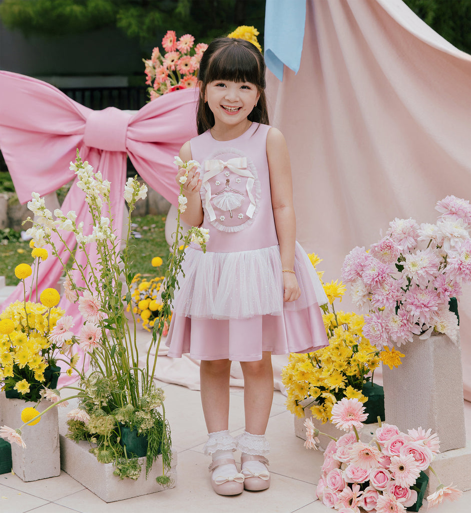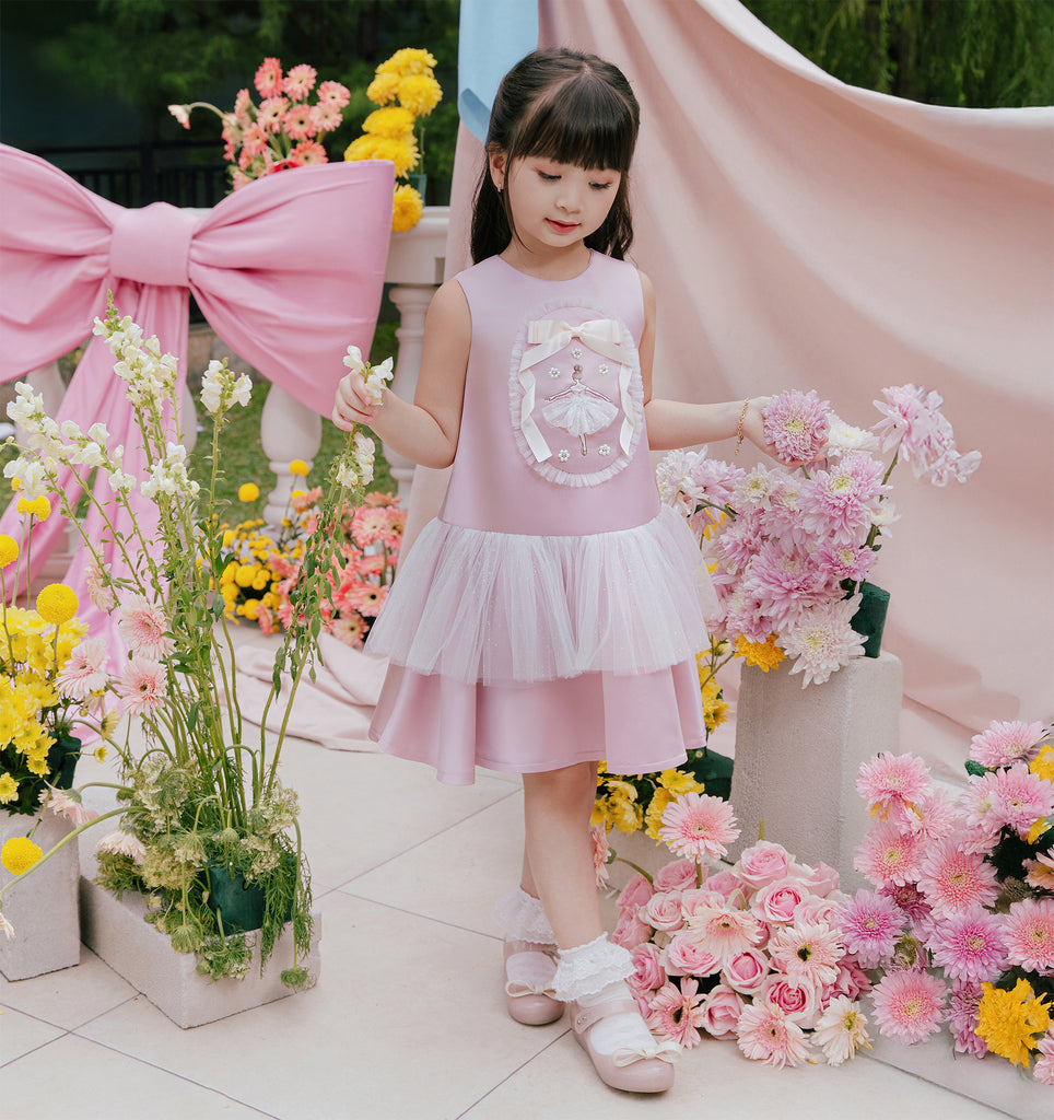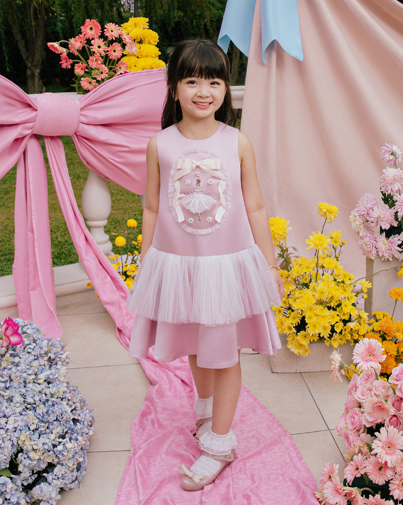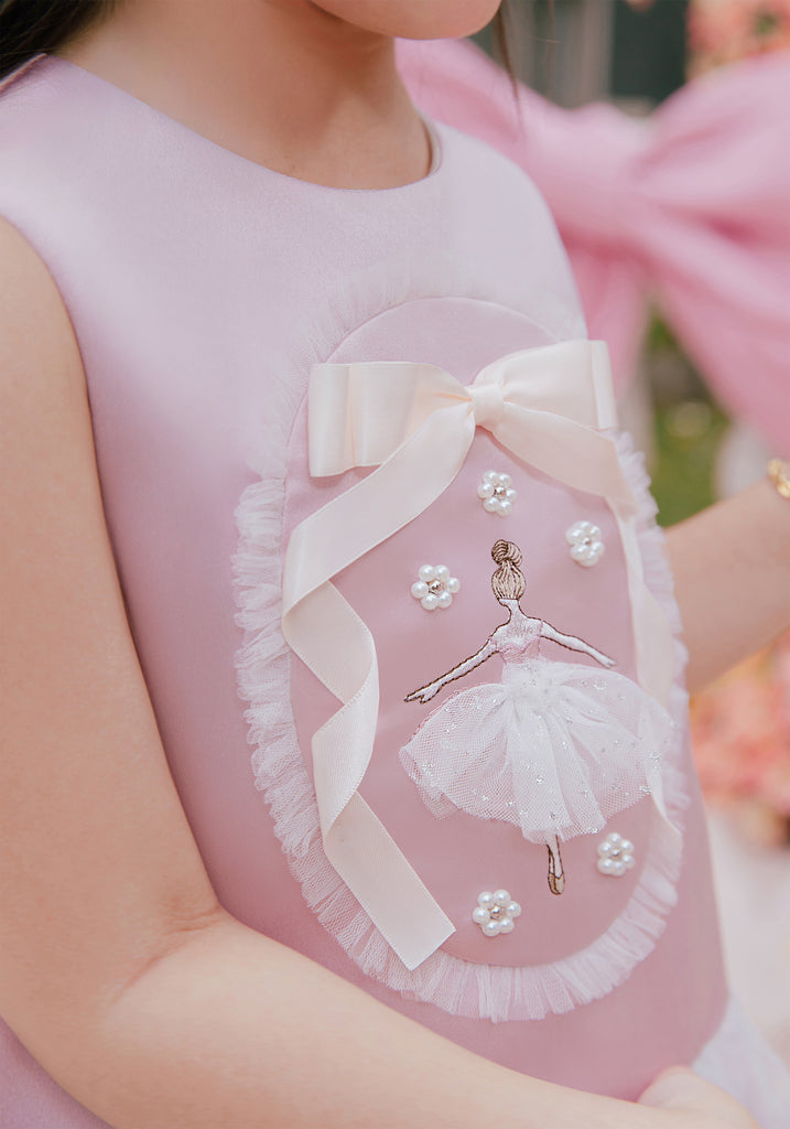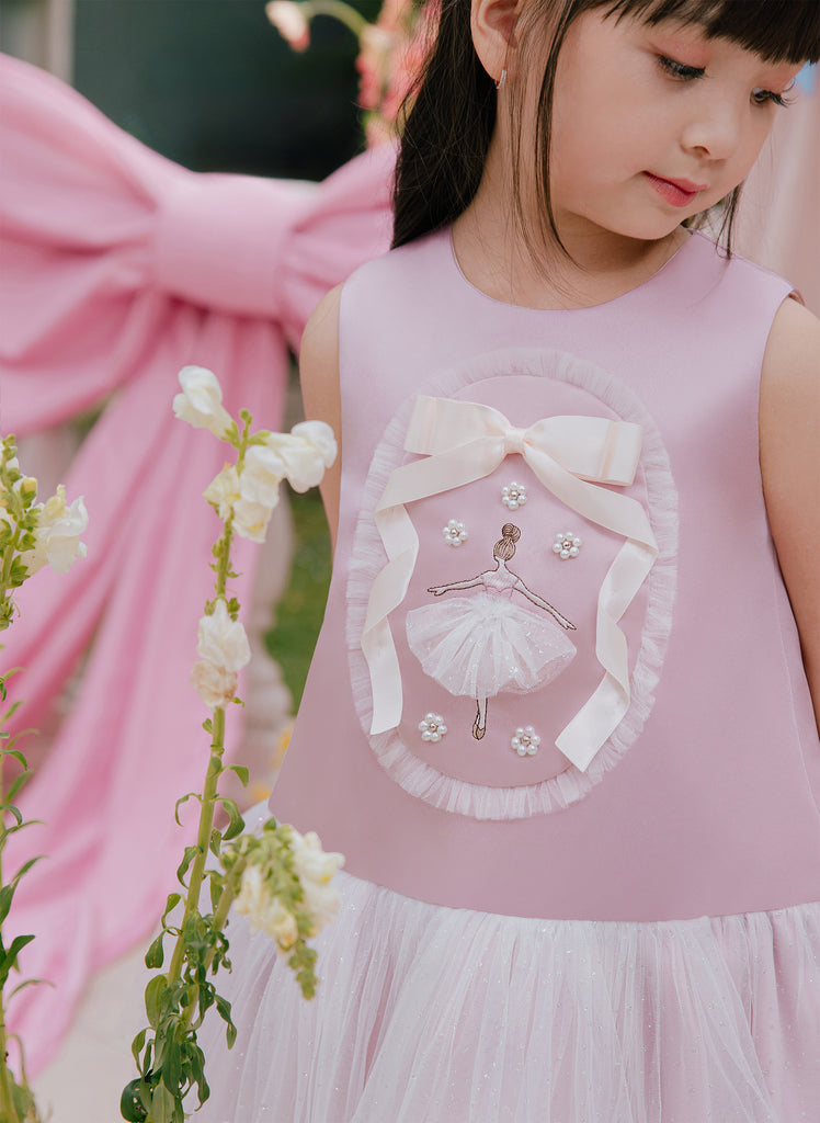 Custom Design Ballerina Illustration Embroidery with Glitter Tulle Skirt, Pearl Detailing, Ribbon Accessory, Duchess, Glitter Tulle, Soft Tulle, Cotton Lining.